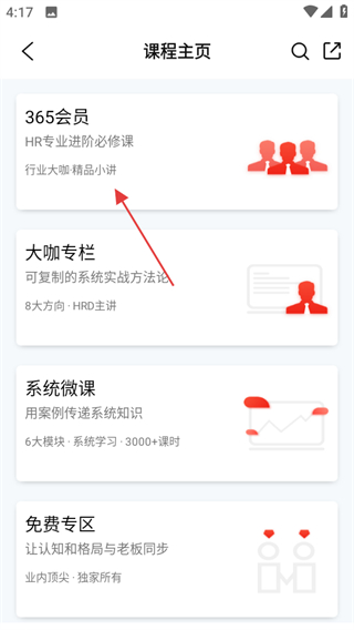 2、在课程主页,点击365会员可进入365会员课程列表页面。