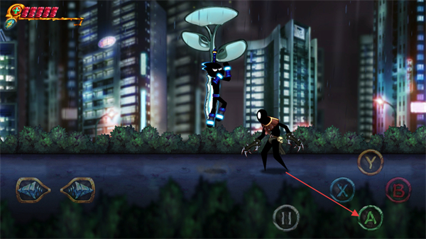 3、右下角A键为跳跃键,可以躲避靠近的敌人,绕到背后进行攻击。