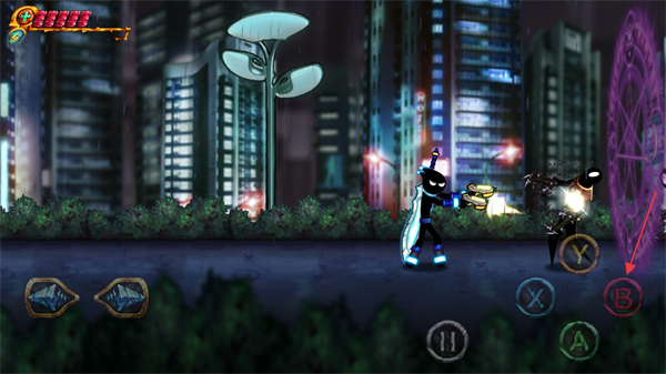 4、右下角的B键为特殊技能,角色将使用手枪进行远距离射击。