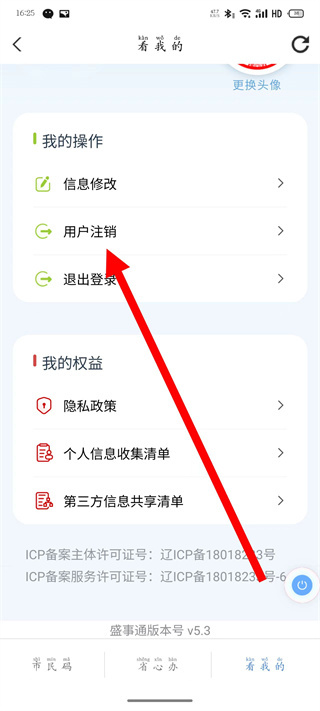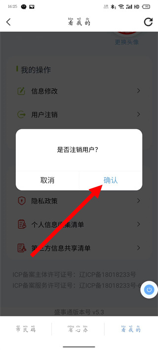 2、在个人中心页面,点击用户注销,弹出注销确认框。