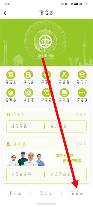 1、打开盛事通,点击底部导航栏看我的,进入个人中心页面。