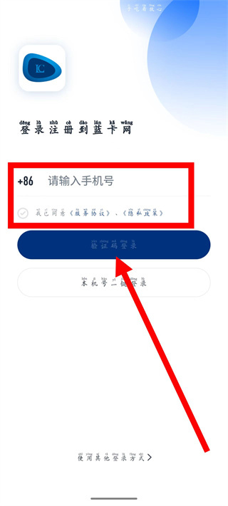 1、打开蓝卡网,在弹出的弹窗中点击同意,进入登录界面。