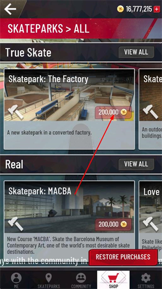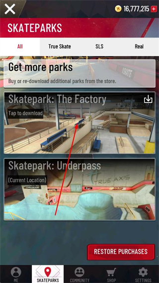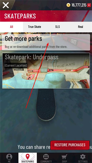 3、在滑板公园列表中,选择想要解锁的公园,花费金币或通过下载等方式解锁该场景。