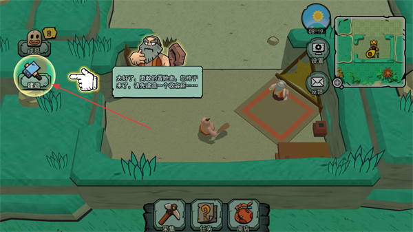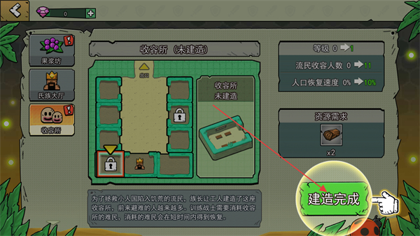 1、点击建造按钮,开启建筑建造流程,如建造收容所。