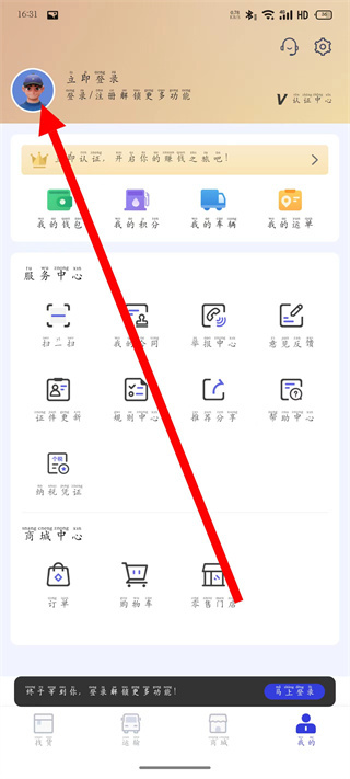 2、在个人中心页面,点击立即登录,进入登录界面。