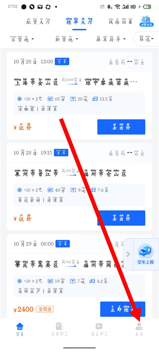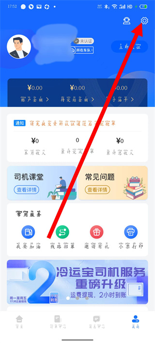 1、打开冷运宝司机版,点击底部导航栏的我的,进入个人中心页面。