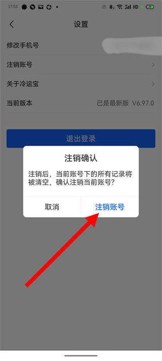 3、在设置页面,点击注销账号,弹出注销确认弹窗。