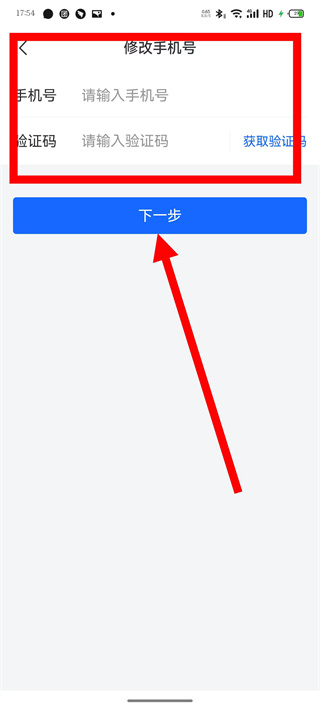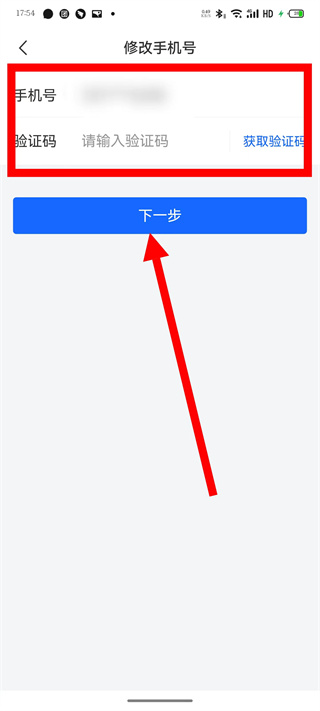 4、输入新手机号及验证码,点击下一步,完成手机号修改。
