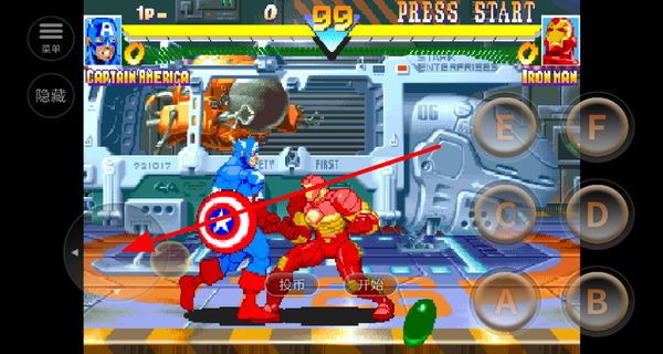 复古街机画风还原漫画质感,英雄立绘与战斗特效精致生动,背景场景细节丰富,完美呈现漫画书页般的视觉艺术风格。
