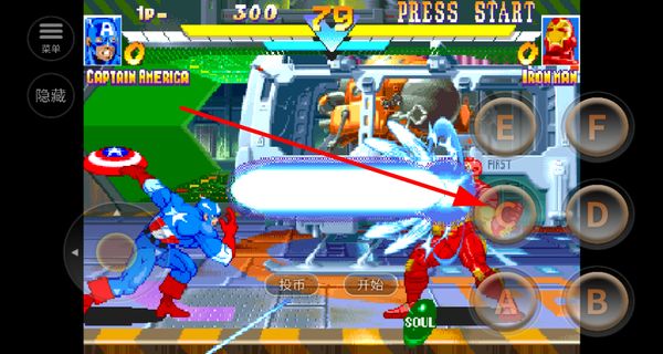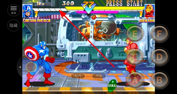 1、角色选择界面挑选喜欢的英雄,比如美国队长,选好后进入对战模式,在充满科技感的场景里开启格斗对决。