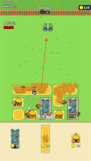 2、花费金币建造防御建筑如城堡,同时种植小麦获取资源。