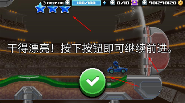 2、完成关卡后,按下继续按钮,推进游戏解锁新内容。