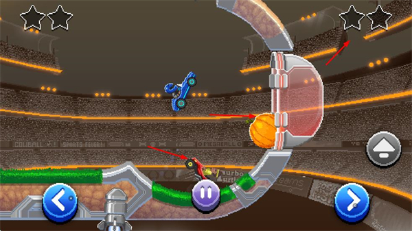 进球需依靠车辆碰撞和蓄力跳跃,而非传统足球的踢打,车辆成为操控足球的工具,每一次进球都需要精准把控碰撞角度和跳跃时机,增加操作策略性。