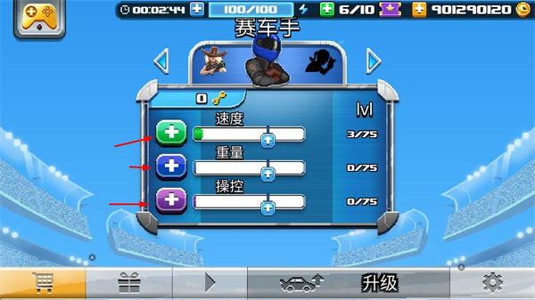 4、升级赛车速度、重量、操控等属性,增强性能,提升比赛表现。