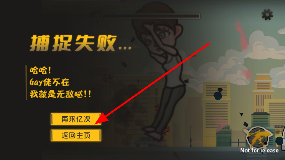 4、若捕捉失败,点击再来亿次按钮重新挑战,不断尝试直至成功,持续坚守守护城市的使命。