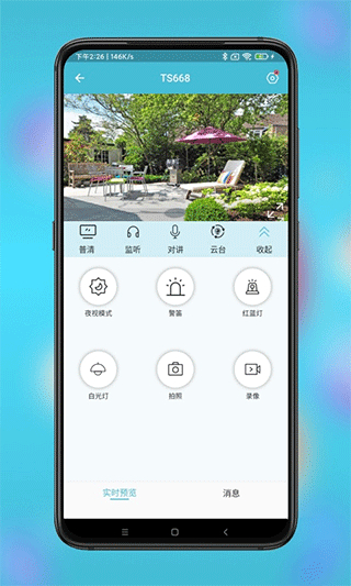 可实时查看监控设备传输的画面,支持多种清晰度切换以适配不同网络环境,同时能添加多台监控设备并切换查看,满足多个场景的需求,画面传输稳定流畅。