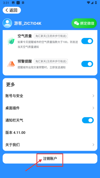 2、在个人中心页面,点击注销账户选项,弹出注销提示框。