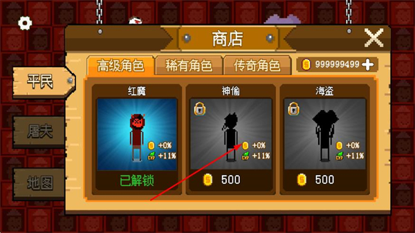 2、在商店的平民分类下,可花费金币解锁不同角色皮肤,部分皮肤还能提升经验获取比例。