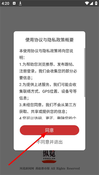1、在使用协议弹窗中,点击同意,进入首页。