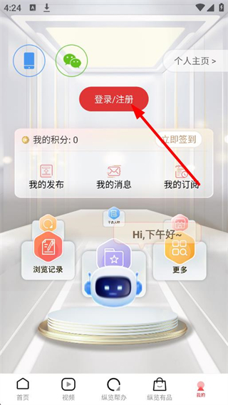 3、在个人页面,点击登录/注册,进入登录页面。