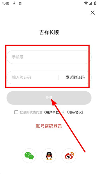 4、输入手机号并输入验证码,点击登录,完成账号登录操作。