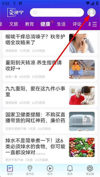 1、在APP首页,点击右上角个人头像,进入个人页面。