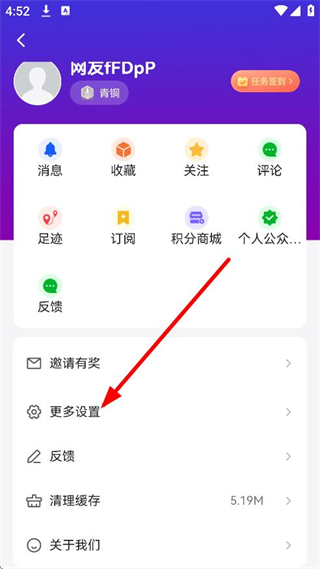 2、在个人页面,点击更多设置,进入更多设置页面。