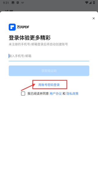 3、在登录页面,点击用账号密码登录选项,进入账号密码登录页面。