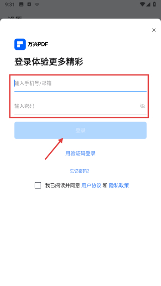 4、在账号密码登录页面,输入手机号/邮箱和密码,点击登录按钮,完成账号登录操作。