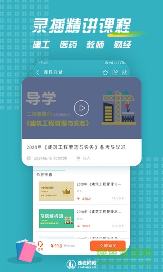 是走考网校推出的录播课程,包括建工、医药、学历、财经、教资、人力资源管理师等,录播有可倍速播放、下载回放、随时随地学习等优势。