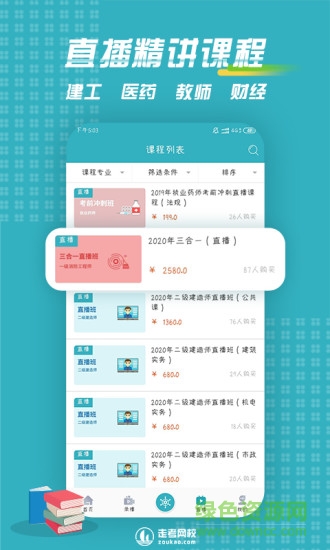 是走考网校推出的直播课程,包括建工、医药、学历、财经、教资、人力资源管理师等,直播有线上学习、随时提问、及时答疑等优势。