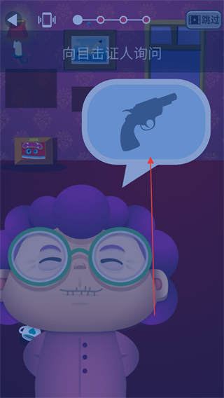 2、与目击证人互动,点击证人搜集证词,获取与案件相关的线索,如证人提供的手枪线索。