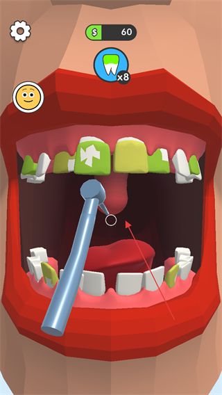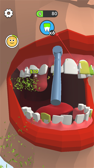 1、使用工具清理患者牙齿上的污渍,每次清理可获得金币和牙齿修复进度。
