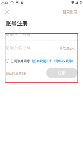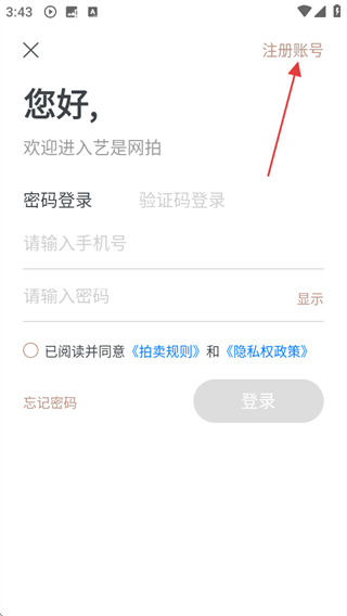 3、在账号注册页面,输入信息,同意协议后点击注册可完成账号注册。