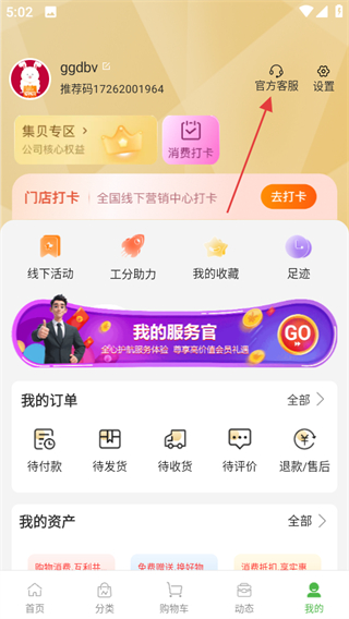 2、在个人中心页面,点击官方客服可进入在线客服页面。