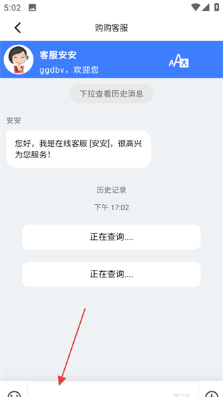 4、在客服聊天页面,可输入问题与客服进行对话沟通。