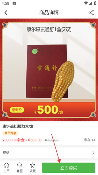 4、在商品详情页面,点击立即购买可完成商品购买操作。