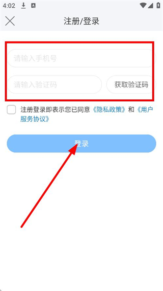 4、输入手机号,点击获取验证码,点击登录,完成账号登录操作。