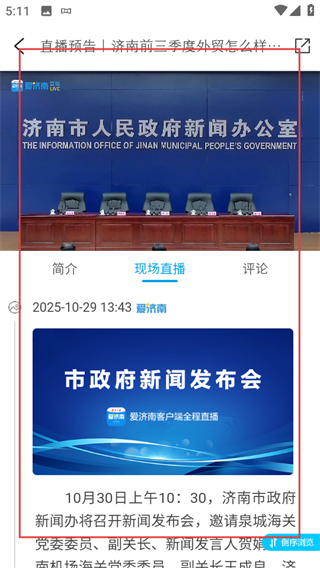 3、在直播详情页面,即可查看市政府新闻发布会直播的回放内容。