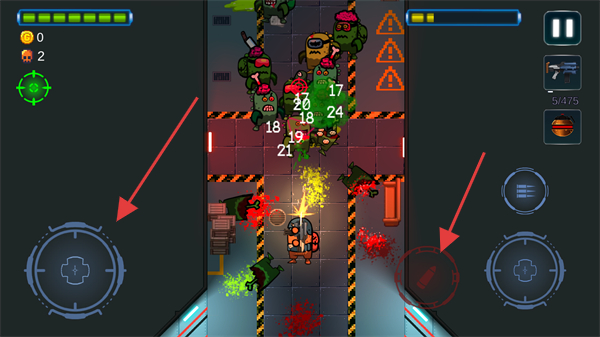 僵尸攻击频率随关卡提升加快,需在快速移动中精准瞄准,单指控制走位、双指操作射击的模式,考验操作熟练度,能带来即时战斗爽感。
