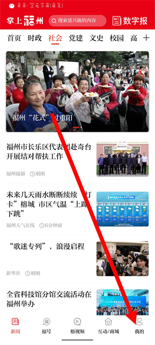 1、打开掌上福州,点击底部右下角我的,进入个人页面。