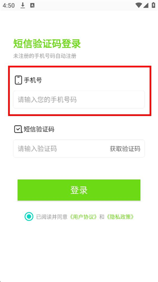 2、随后我们可以在短信验证码的登录页面,即可输入手机号码。