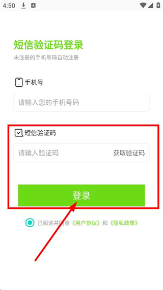 3、在短信验证码登录页面,获取验证码并输入后点击登录,完成账号登录操作。