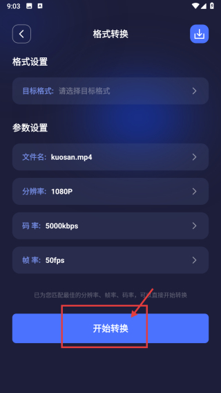 4、在格式转换设置页,点击开始转换按钮,启动视频格式转换流程。