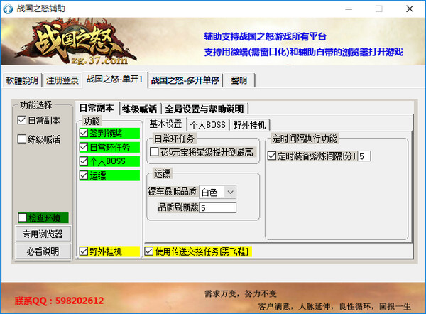 战国之怒辅助工具是一款专门为战国之怒的玩家们提供的游戏辅助工具,支持小号多开、日常副本等游戏辅助,让你更好的体验游戏的无限乐趣,有需要者欢迎下载!