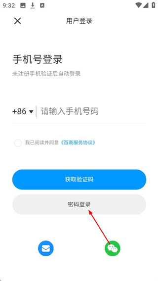 3、在用户登录页面,点击密码登录可进入密码登录页面。
