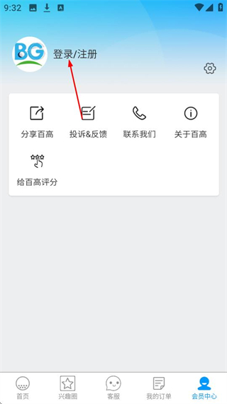 1、打开百高,点击页面右下角会员中心,可进入会员中心页面。