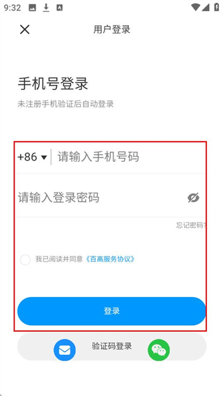 4、在密码登录页面,输入信息,同意协议后点击登录可完成账号登录。