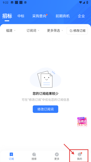 1、打开招投标APP,点击底部我的选项,进入个人中心页面。