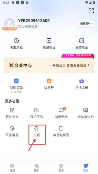 2、在个人中心,点击设置选项,进入设置界面。